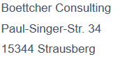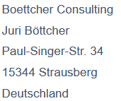 Der Nutzung von im Rahmen der Impressumspflicht veröffentlichten Kontaktdaten durch Dritte zur Übersendung von nicht ausdrücklich angeforderter Werbung und Informationsmaterialien wird hiermit ausdrücklich widersprochen. Die Betreiber der Seiten behalten sich ausdrücklich rechtliche Schritte im Falle der unverlangten Zusendung von Werbeinformationen, etwa durch Spam-Mails, vor.